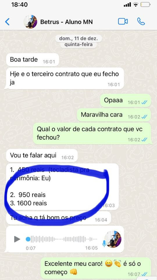 Estou democratizando o acesso à informações valiosas e restritas sobre o mercado de eventos particulares mais lucrativo e próspero para músicos comuns no Brasil. Por isso removi a barreira do preço, para levar a todos os músicos do Brasil um conhecimento essencial capaz mudar suas vidas para melhor. Você ter a oportunidade de conhecer o método que utilizo desede 2005, onde qualquer músico pode faturar R$10.000,00 ou muito mais por mês, até mesmo sem tocar. Na verdade, é possível faturar R$10mil até em um único contrato.
